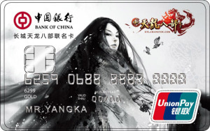 中國銀行攜手國內三大網絡游戲公司之一的搜狐暢游,推出以游戲《新天龍八部》為主題的聯名卡產品,以網絡游戲用戶、年輕群體為主推群體進行推廣。