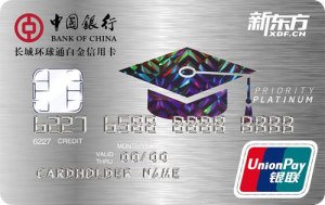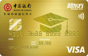 長城環球通新東方聯名信用卡是中國銀行聯手新東方集團、VISA和銀聯卡組織,精心為有出國留學規劃的學生家庭打造的一款專屬產品,不僅傳承了留學生長城國際卓雋卡的諸多功能與便利外,還為客戶提供一攬子家庭賬戶集中管理、留學相關的境內外用卡專屬優惠權益,伴您一同走過出國留學之路。