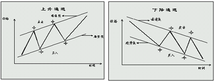 當(dāng)價(jià)格上升或下降時(shí),價(jià)格變動(dòng)的范圍常常局限于一個(gè)狹窄的帶狀區(qū)內(nèi),這個(gè)區(qū)域稱為“通道”,當(dāng)價(jià)格滯留于所局限的軌道內(nèi)時(shí),交易者能夠預(yù)測價(jià)格的變動(dòng),從而確定買賣的時(shí)機(jī),即在通道下方買入,在通道上方賣出。